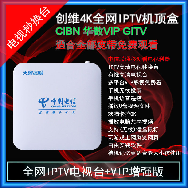 中国电信移动联通天翼高清IPTV 海外电视版 VIP影视 创维4K机顶盒热门设计联盟服务商