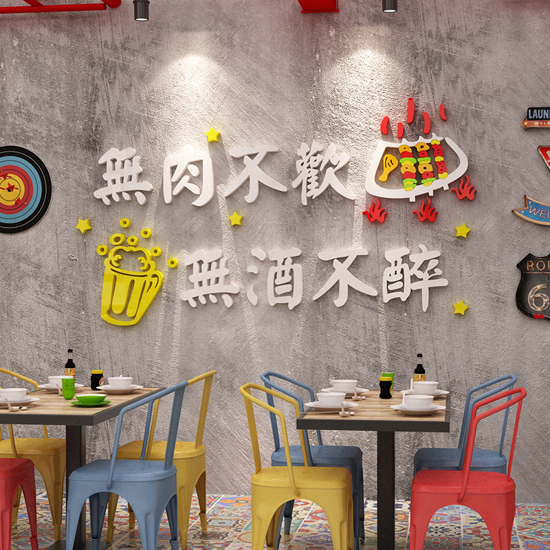烧烤店装饰创意墙面搞笑贴纸小饭馆烤肉撸串餐厅火锅饭店铺装修画热门设计联盟服务商