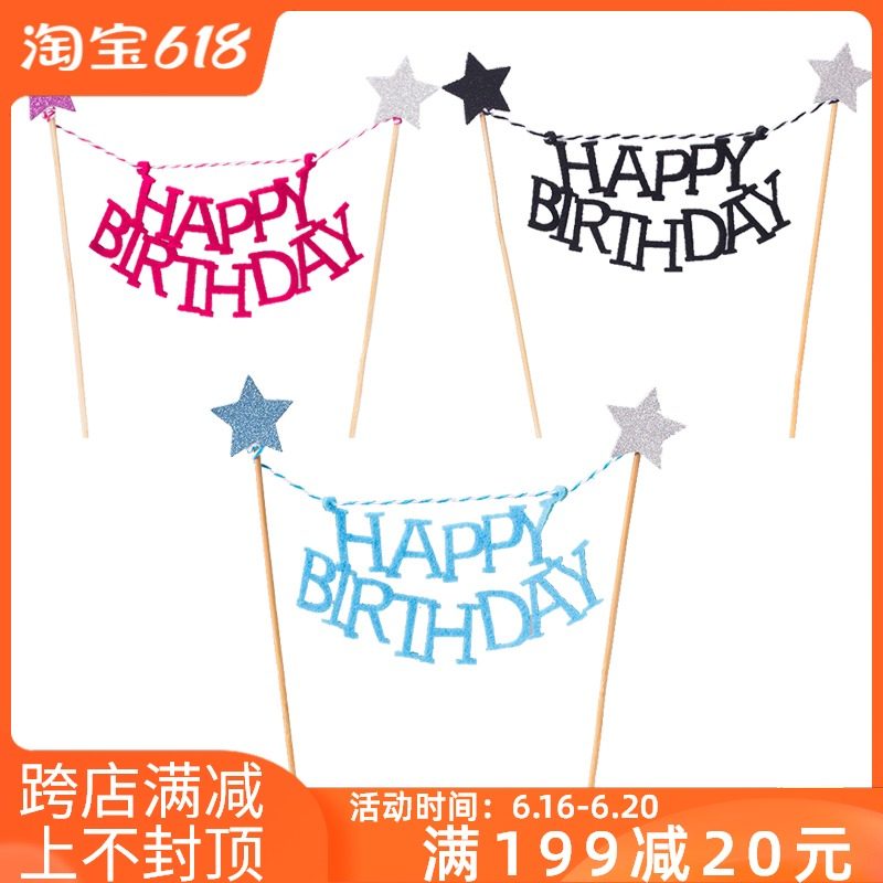 韩版HAPPY BIRTHDAY蛋糕拉旗 生日快乐插旗 蛋糕装饰吊旗横幅插旗热门设计联盟服务商