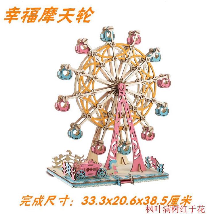 小型摆拼装木制摩天轮场景景观件女友模型游乐场送大型玩具模型3d热门设计联盟服务商
