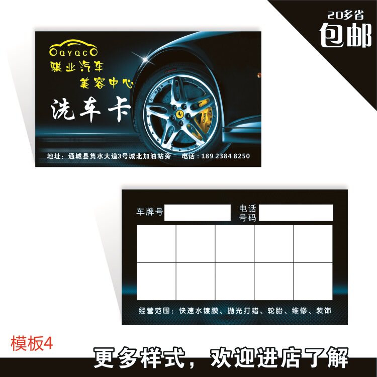 洗车店会员卡制作洗车计次卡4/记10次卡汽车美容名片设计印刷包邮热门设计联盟服务商