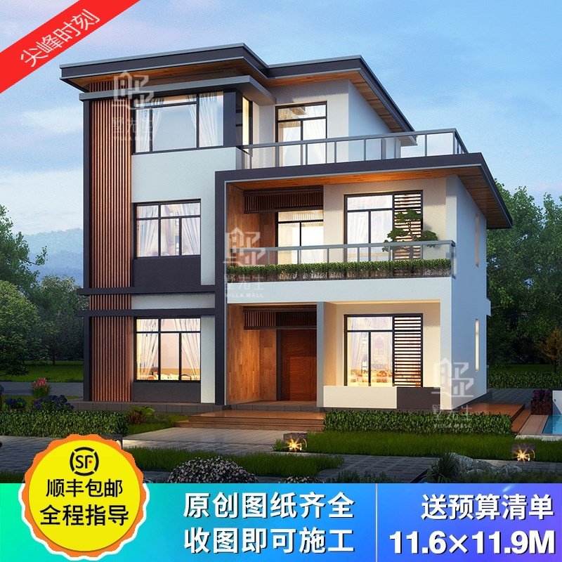 新农村三层小别墅设计图纸自建房子全套建筑施工效果图现代风格。热门设计联盟服务商