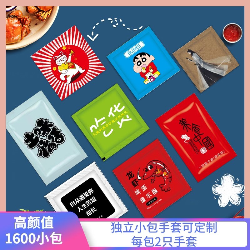 食品级一次性手套独包小包餐饮外卖炸鸡披萨龙虾创意塑料加厚定制热门设计联盟服务商