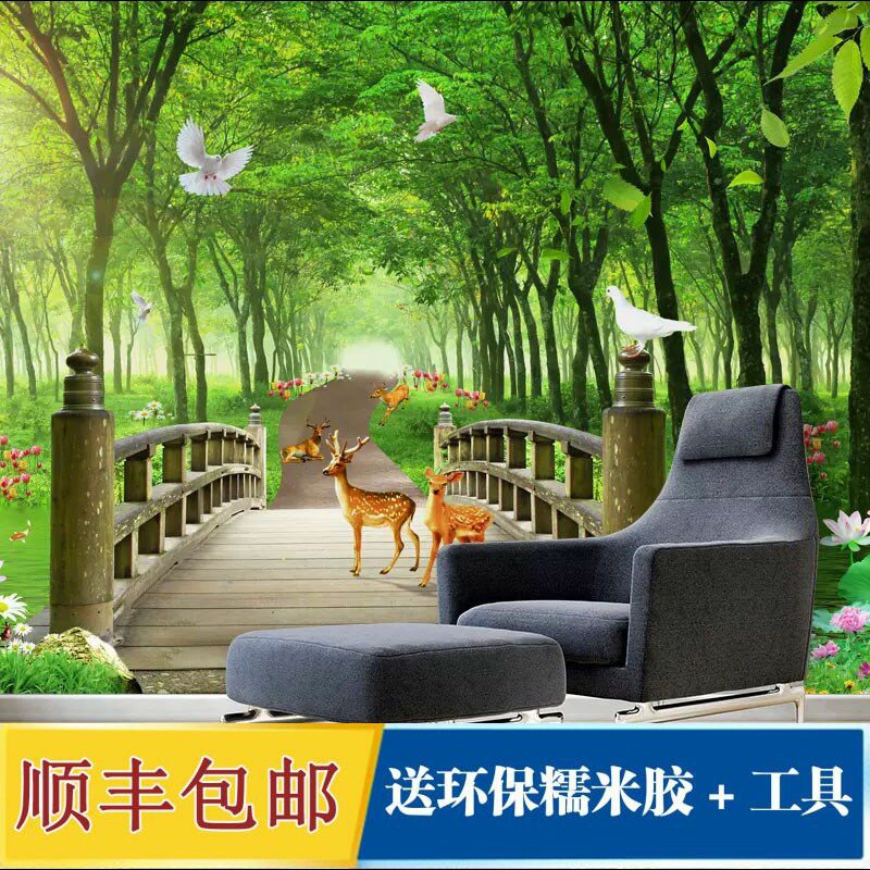 8D约绿色树林麋鹿电视背景墙纸装饰影视墙壁纸卧室客厅沙发壁画。热门设计联盟服务商