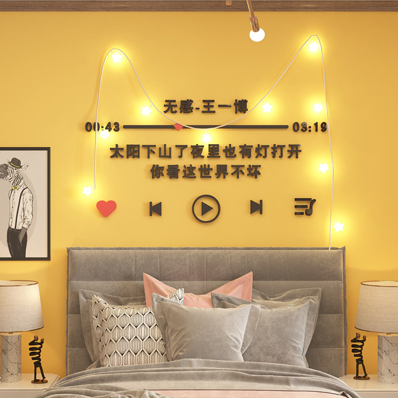 歌词墙贴3d立体卧室装饰床头墙面带灯定制文字贴纸ins房间布置画热门设计联盟服务商