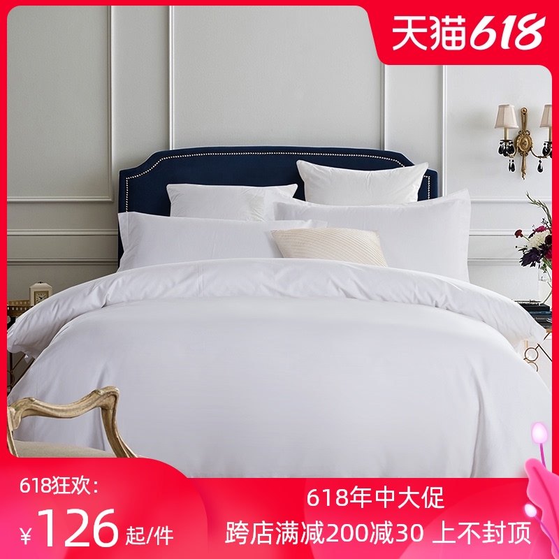 五星级酒店床上用品60支纯棉简约白色贡缎宾馆全棉四件套批发定制热门设计联盟服务商