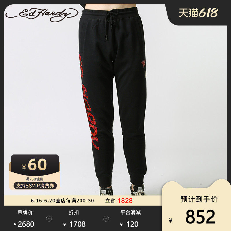 Ed Hardy 春夏新款男士时尚烫钻LOGO设计休闲长裤E12KAM116006热门设计联盟服务商