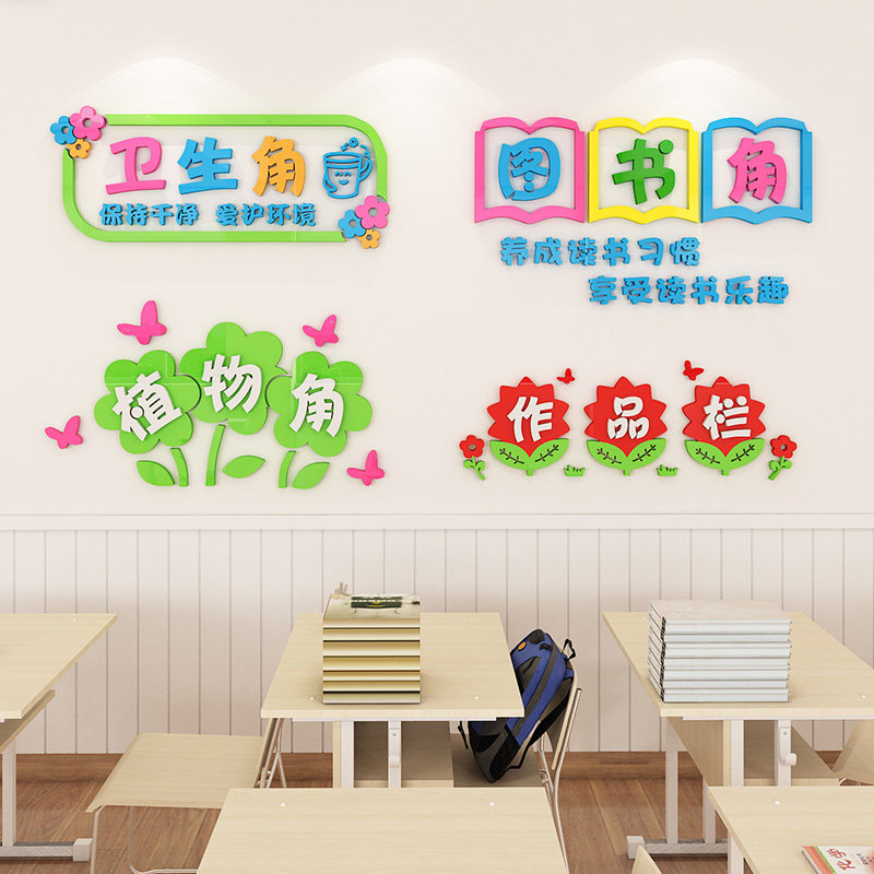 图书角布置装饰班级创意读书卫生角墙贴小学作品栏学校教室文化墙