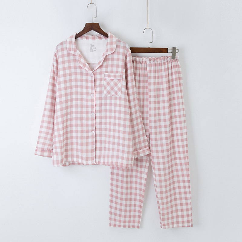 无印格子日系纯棉双层纱家居服春夏秋男女款长半袖星级情侣款睡衣热门设计联盟服务商