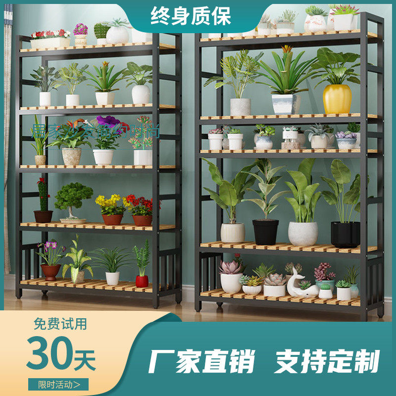 实木铁艺花架室外置物架阳台落地式层高可调节室内客厅架多肉花架热门设计联盟服务商