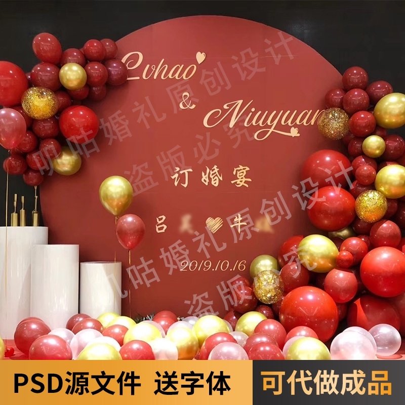 订婚宴背景墙背景板定制KT板设计婚礼定制气球布置订婚海报迎宾牌热门设计联盟服务商