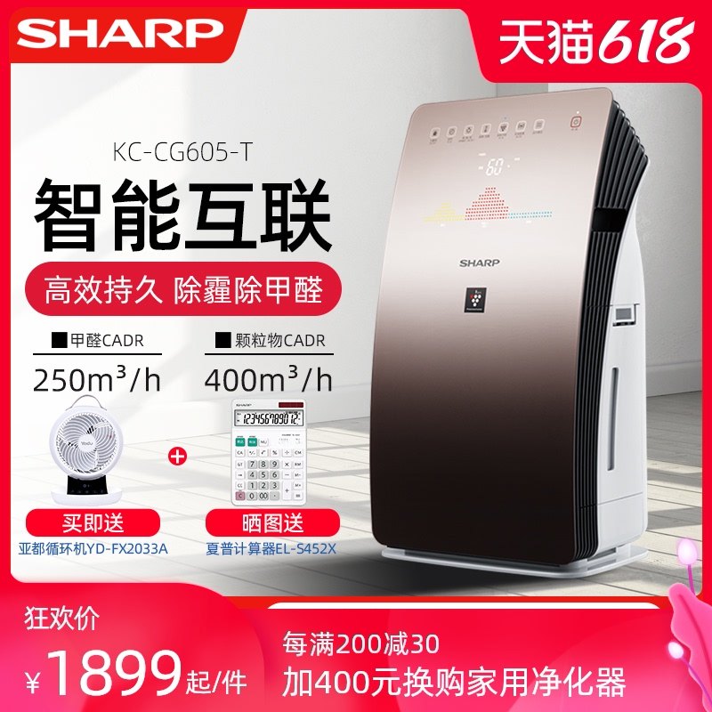 夏普空气净化器CG605家用智能净化空气除PM2.5二手烟除醛菌净化热门设计联盟服务商