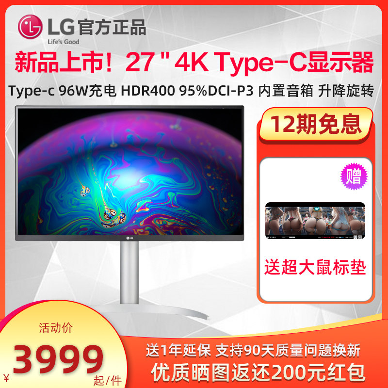 【12期免息】LG 27UP850 27英寸4K显示器IPS设计绘图影视后期Type-C接口96W快充广色域HDR MAC电脑外接屏幕热门设计联盟服务商