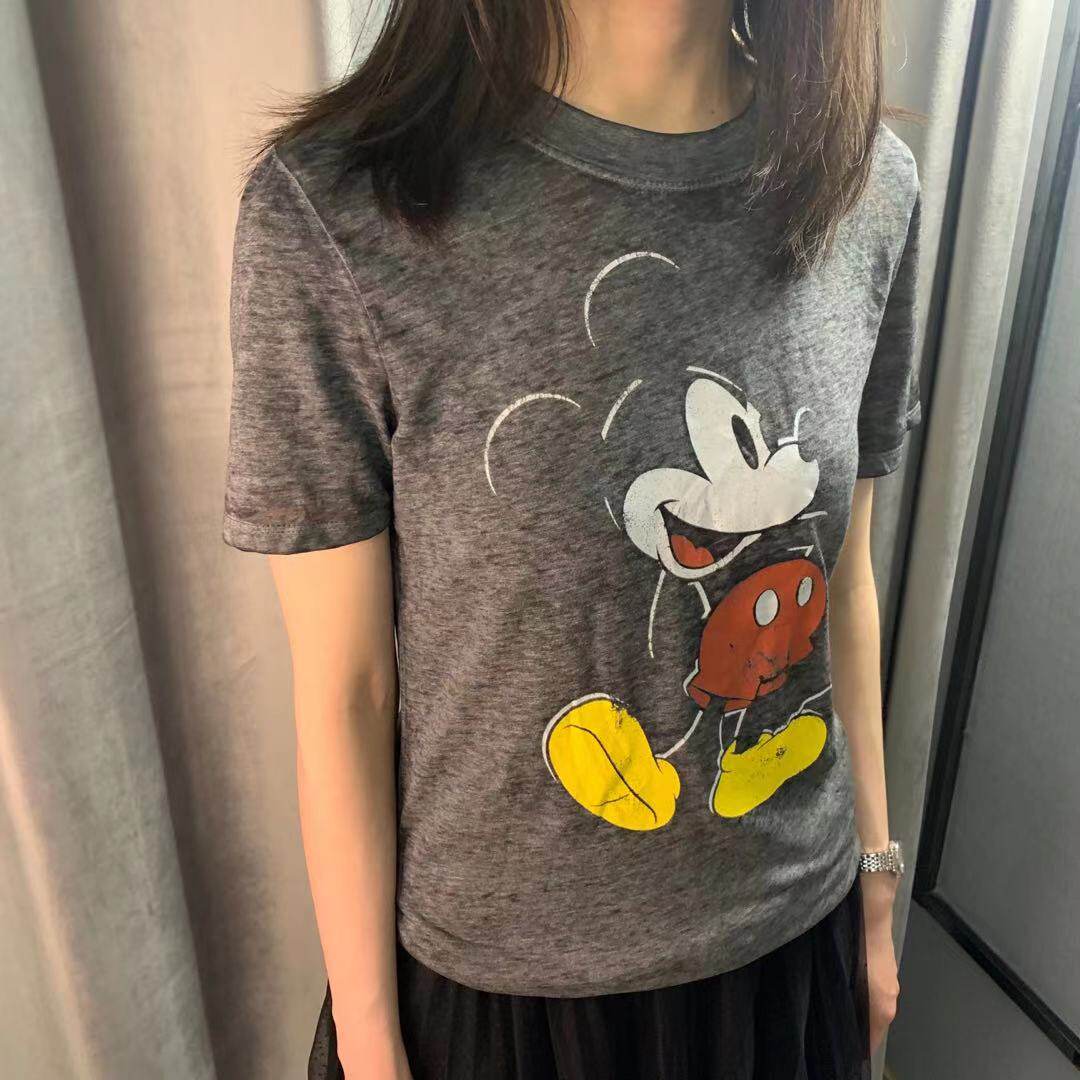 商场同款!舒适柔软莫代尔棉T恤女薄款力绵柔扎染做旧卡通印花热门设计联盟服务商