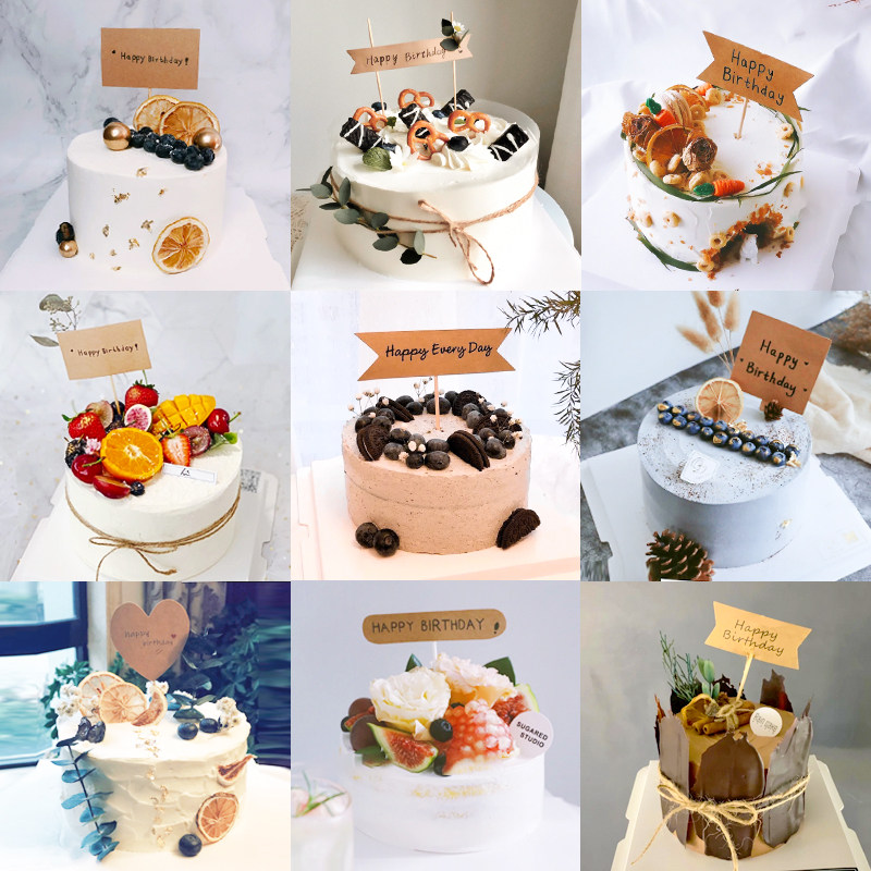 森系简约zakka风牛皮纸生日蛋糕装饰插牌插件复古横幅可写字插卡热门设计联盟服务商