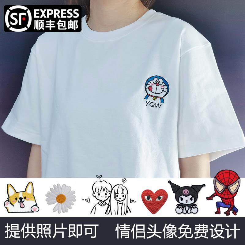 T恤定制设计刺绣DIY纯白棉短袖班服个性照片卡通情侣头像名字logo热门设计联盟服务商