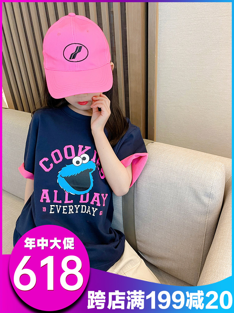 MIKA 2021夏装新款韩版中大男女童卡撞色假两件设计宽松短袖T恤热门设计联盟服务商