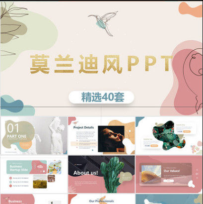 莫兰迪风ppt模板时尚简约动态扁平商务答辩总结汇报设计素材2020热门设计联盟服务商