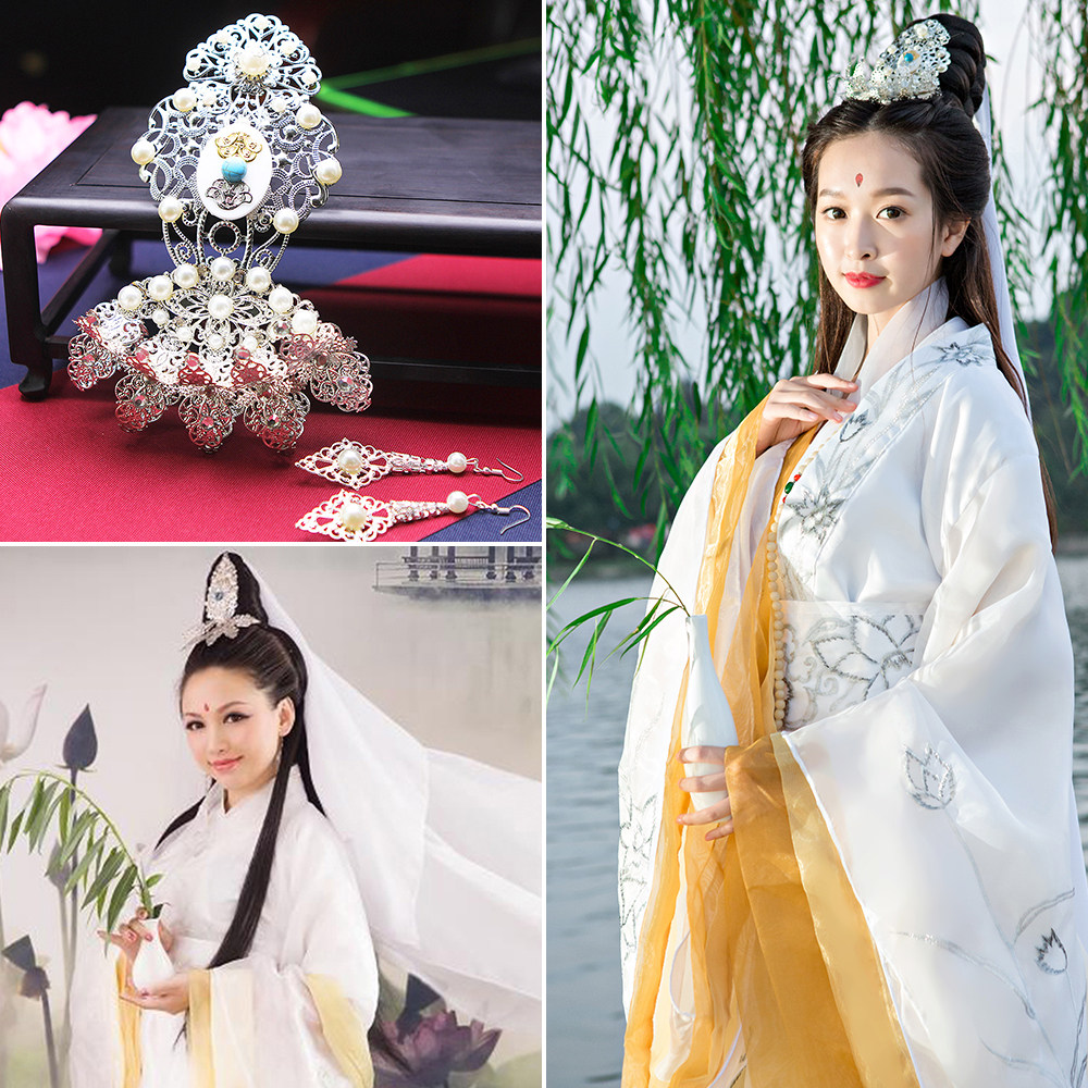 影视剧观音菩萨妈祖发饰头饰白色头纱观音瓶柳枝摄影道具观音发冠热门设计联盟服务商