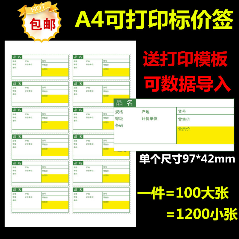 A4可打印商品标价签超市标签药品药店标价签纸送打印软件特价包邮热门设计联盟服务商